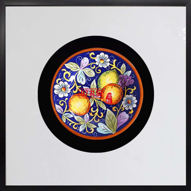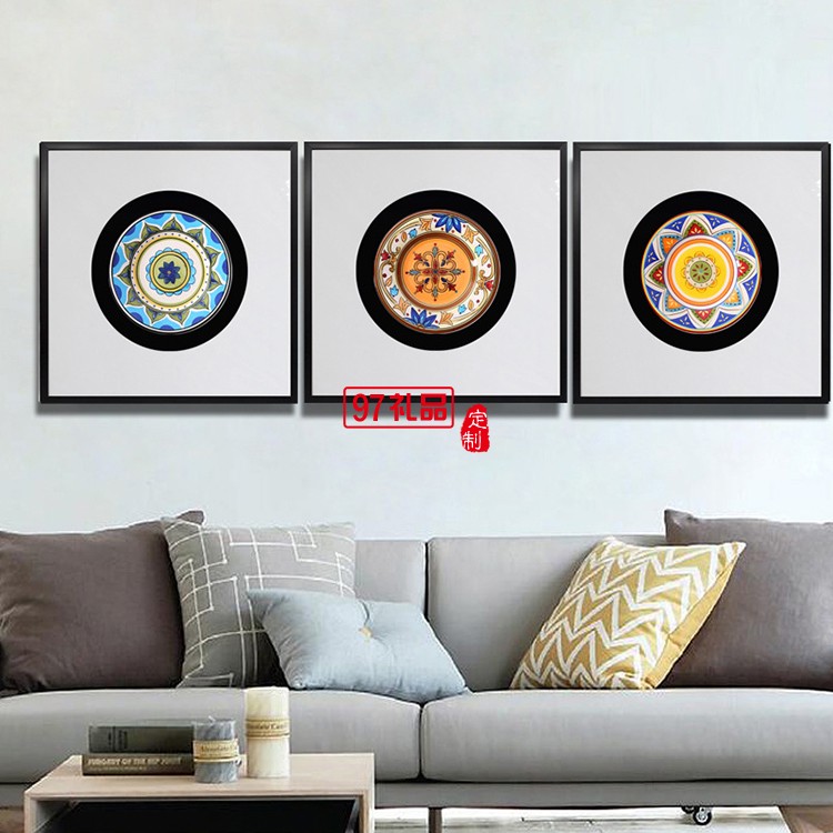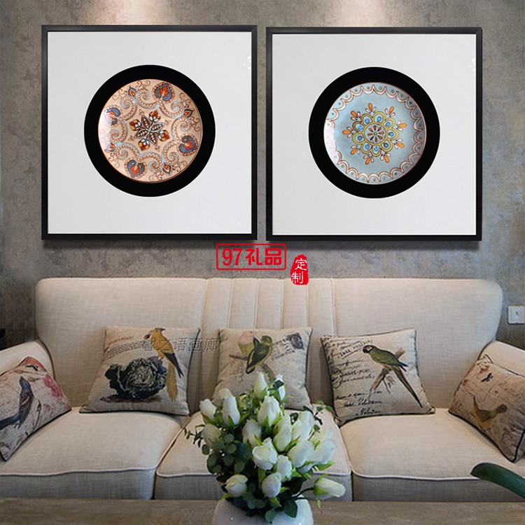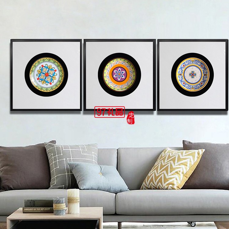 立體實(shí)物陶瓷盤(pán)軟裝樣板房有框掛畫(huà)